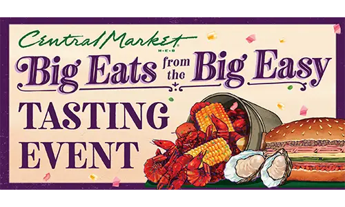 Big Eats From The Big Easy Tasting EventGather your whole krewe to join us for a FREE celebration filled with iconic New Orleans bites and sips.We’re excited for you to be a part of our all-out ya-ya of Crescent City seafood, brews, and Creole and Cajun flavors from the other side of the Mississippi.Join Dallas Lovers Lane Central Market for souvenir New Orleans caricatures, live music from the Secondline Brass Band, and more at the Big Eats From The Big Easy Tasting Event!Each registered guest will also receive a $5 off $40 coupon and a limited‑edition reusable shopping bag. Details