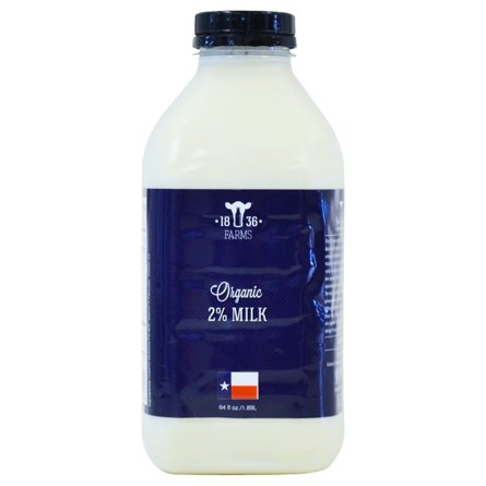 1836 Farms Organic 2% Reduced Fat Milk, 1/2 gal