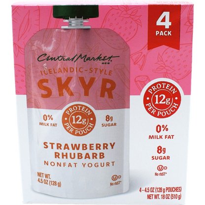 Central Market 12g Protein Skyr Nonfat Yogurt Pouch - Strawberry Rhubarb, 4 ct