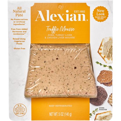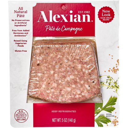 Pork, turkey liver and chicken liver mousse topped with aspic. All natural. Minimally processed. No preservative or artificial ingredients. Vegetarian fed diet. Pate & specialty meats. All meat, dairy, and poultry ingredients are raised without added hormones and antibiotics. Federal Regulations...