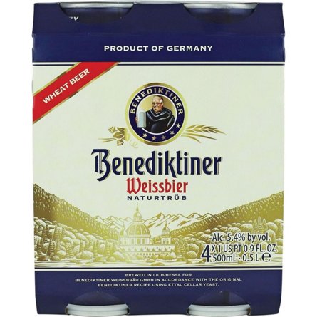 Benediktiner Weissbier German Wheat Beer 4 pk Cans, 16.9 oz