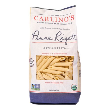 Carlino's very own artisan dried pasta is the perfect addition to your quick dinner! Made in Abruzzo, Italy, and imported so you can have the very best. Our dried pasta is made from 100% organic durum wheat semolina and bronze die-cut for superior texture.