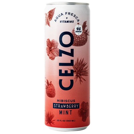 Celzo Hibiscus Strawberry Mint Sparkling Agua Fresca, 12 oz