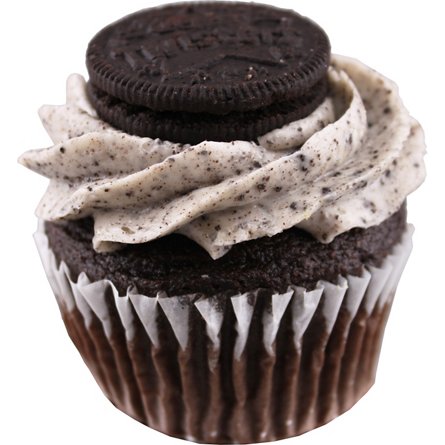 Chocolate cupcake with a cookie/buttercream blend and topped with an Oreo cookie.