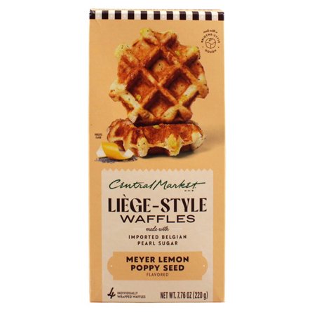 Indulge in the rich, authentic taste of Central Market Frozen Liège-Style Waffles. They're crafted with thick brioche-style dough and made with delicious Meyer lemon, poppy seeds, real butter and imported Belgian pearl sugar (large granules of sugar that melt into the waffle upon heating). Just thaw...