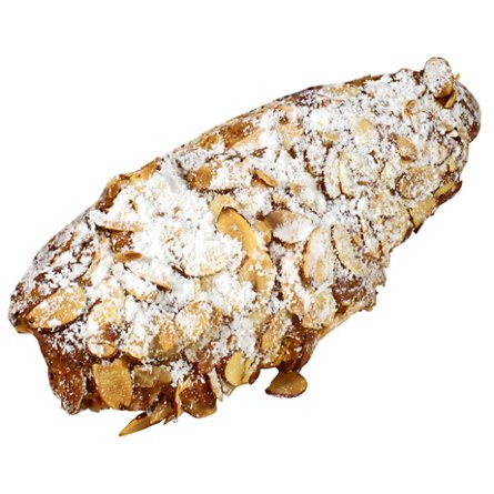 Made with 100% French butter, these croissants are flaky and buttery. Filled and topped with frangipane, sliced almonds, and dusted with powdered sugar.