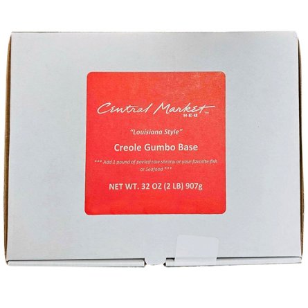 Central Market "Louisiana Style" Creole Gumbo Base. Simply thaw and add one pound of peeled raw shrimp or your favorite fish or seafood. Simmer until cooked through and serve with rice.