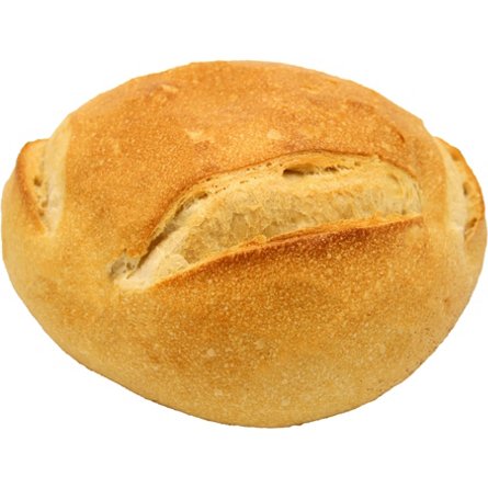 A French-style mild sourdough bread with a crisp, golden-brown crust and a moist crumb. Slice up and serve.