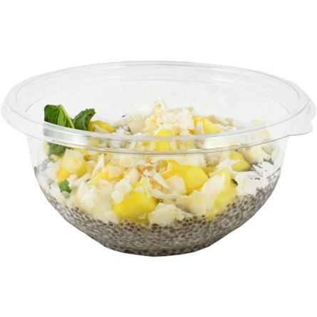Breakfast has never been easier! These chef prepared overnight chia are topped with pineapple, mango and shredded coconut.