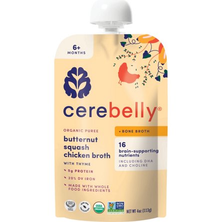 Cerebelly Butternut Squash Chicken Broth pouch combines hearty butternut squash with savory chicken bone broth, carrots and comforting thyme that echoes the warm, umami flavors of a roast chicken dinner! Beyond the complex ingredient profile, this pouch's powerful nutrient combination includes DHA, ...