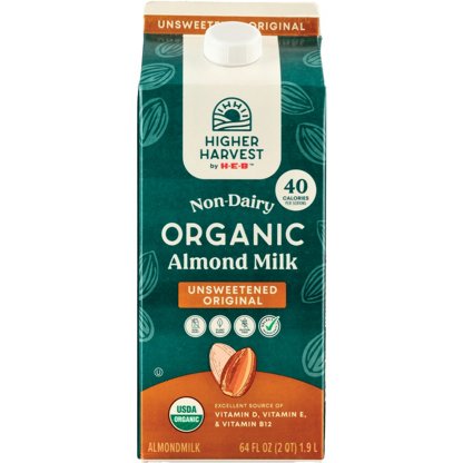 Higher Harvest by H-E-B Organic Non-Dairy Unsweetened Original Almond Milk, 1/2 gal