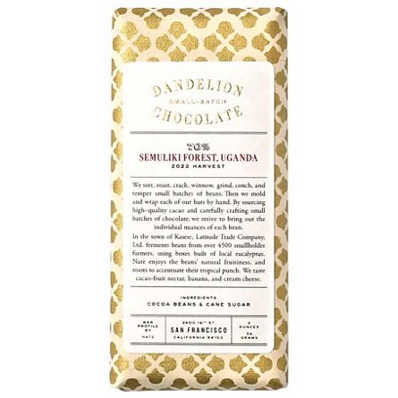 Dandelion Chocolate Semuliki Forest, Uganda 70% Chocolate Bar, 2 oz