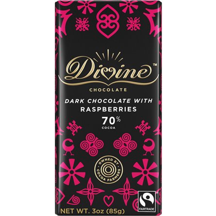 Divine Chocolate 70% Dark Chocolate with Raspberries, 3 oz