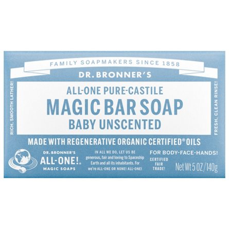 Dr. Bronner's Magic Soaps All-One Hemp Baby Unscented Pure-Castile Bar Soap, 5 oz