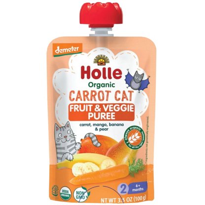 Meet our newest offering from Holle. Tasty organic fruit and vegetable purees made without added sugar or salt. The ideal snack between meals or on the go. Made with ingredients of the best Demeter/biodynamic & non-GMO quality in Italy. From Holle.