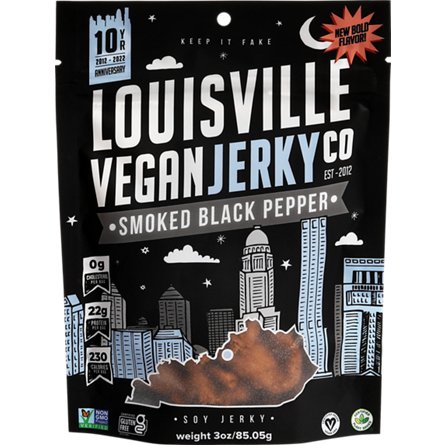Louisville Vegan Jerky Smoked Black Pepper Soy Jerky, 3 oz