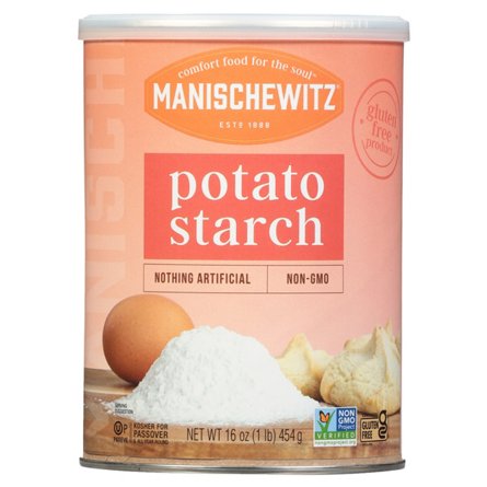 Manischewitz potato starch is a versatile kitchen staple that's made with simple, natural ingredients. Use it to thicken soups or sauces or as a gluten-free alternative to flour in cooking and baking recipes. Gluten-free. Product of USA. Certified Kosher by the Orthodox Union. Parve product (non-dai...