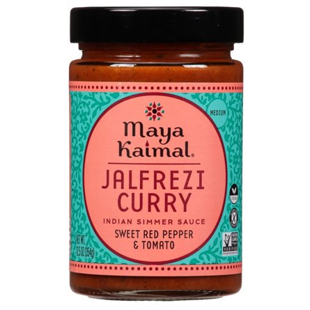 This Maya Kaimal Indian simmer sauce is a quick-starter for making homemade Jalfrezi curry, which was made popular by Bengali cooks who make satisfying stir fries from leftovers. Its bright flavor comes from tomato, garam masala and sweet red peppers. Medium on the spicy scale, it goes well with chi...