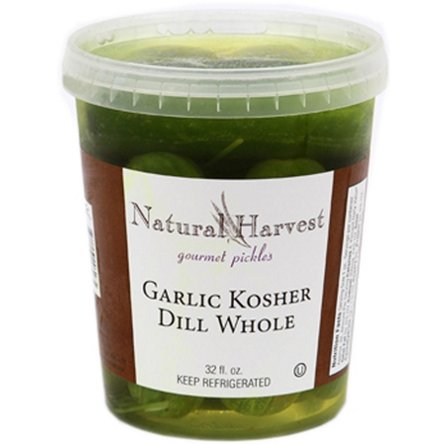 GARLIC KOSHER DILL WHOLE: A favorite among pickle connoisseurs, these are whole fresh cucumbers cured into full flavored classic dill pickles with hints of garlic. Natural Harvestās gourmet brine of purified water, salt, vinegar, garlic, dill, coriander, bay leaf, mustard seed, all spice, and ...