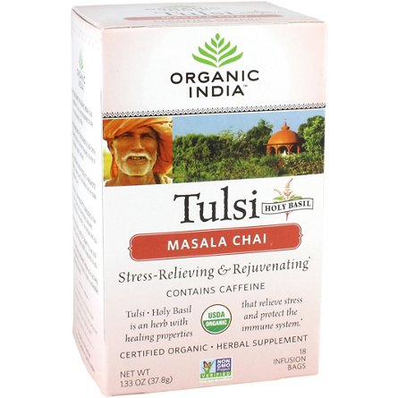 Herbal Supplement. Stress-relieving & rejuvenating. Holy Basil. Contains caffeine. Tulsi - Holy Basil is an herb with healing properties that relieve stress and protect the immune system. USDA organic. Certified organic. Non GMO Project verified. Our 100% organic chai, made with the finest black...