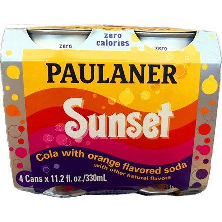 Paulaner Sunset Zero Calorie Cola with Orange Flavored Soda 4 pk Cans, 11.2 oz