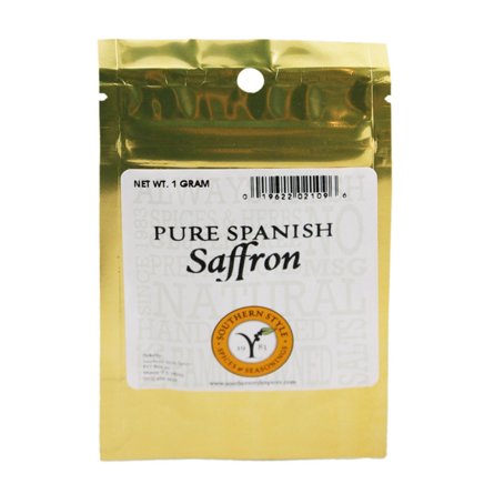 From Southern Style Spices, this gram of pure Spanish saffron gives off a nutty, floral and earthy aroma and flavor. Perhaps the most popular use for saffron is in the classic Spanish dish, paella. Its flavor really comes through when allowed to steep in liquids or sauces over a long period of time....