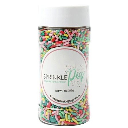 This sprinkle mix is a garden of beautiful spring colors. Pink and yellows contrasted against deep teal and mint to create this one of a kind spring sprinkle mix.