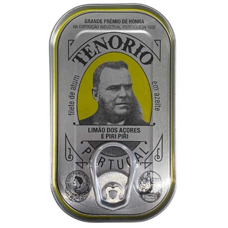 Each tin contains a slice of Azorean lemon and a whole chilli pepper. Tenorio is a portuguese brand making the finest quality tinned tuna fillets in olive oil. Using traditional Portuguese recipes, ensuring the true Portuguese flavours come through. Tenorio's tinned tuna is a premium quality product...