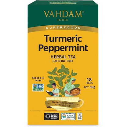 Vahdam Turmeric Peppermint Herbal Tea, 18 ct