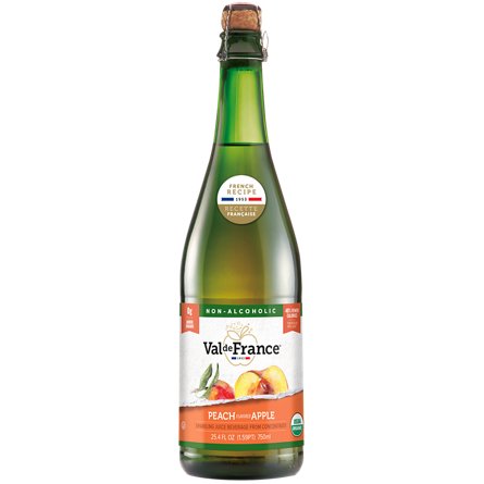 Val de France Organic Sparkling Peach flavored Apple Juice delivers strong fruity notes of peach and the added zing of the fizziness, accompanied with the intense aroma of peaches in a limpid, glossy golden color.