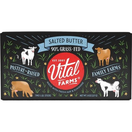 • Package includes: 2 sticks of 4oz Vital Farms Salted Butter