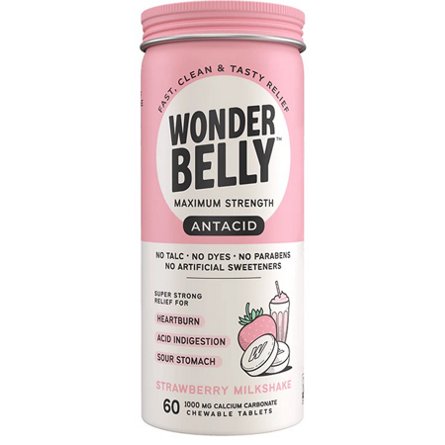 Wonderbelly Strawberry Milkshake Antacid Chewable Tablets, 60 ct