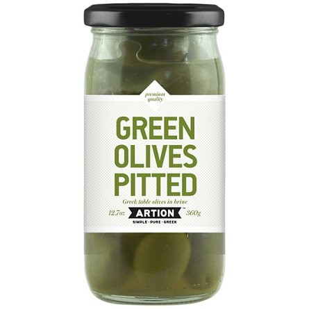 Artion Green Olives Pitted, 12.7 oz