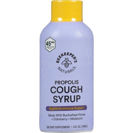 Feel like yourself again with this blend of immune-supporting, super-soothing ingredients that help you get that much-needed sleep. Beekeeper's Naturals propolis cough syrup is made with buckwheat honey, elderberry and melatonin and provides the nighttime immune support you need.