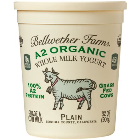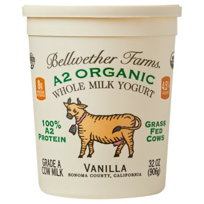 Bellwether Farmsā A2 organic, full-fat yogurt has a sweet-tart taste and lush creamy texture. By using the highest quality milk from Jersey cows, they've created a richer, creamier yogurt, without straining, adding thickeners, or cream. These cows naturally produce milk containing only A2 prot...