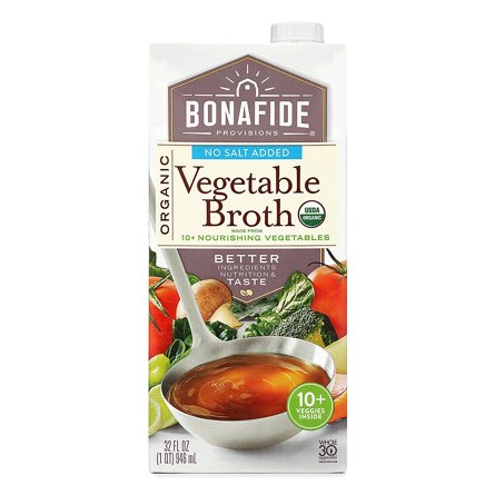 Bonafide Provisions Organic No Salt Added Vegetable Broth made with 10 plus nourishing vegetables.