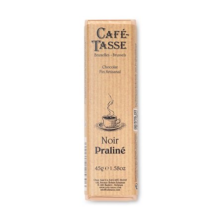 Cafe-Tasse's dark chocolate bar is filled with a delicious hazelnut praline. The praline contains carefully selected hazelnuts which gives it an exceptional taste. A treat to share or keep for yourself. Made in Belgium.