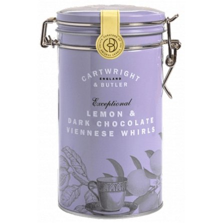 Cartwright & Butler's twist on a classic. The Viennese swirl we all know and love, with the addition of zesty lemon. Finished with a rich dark chocolate, these biscuits are a delicious mix of flavors.