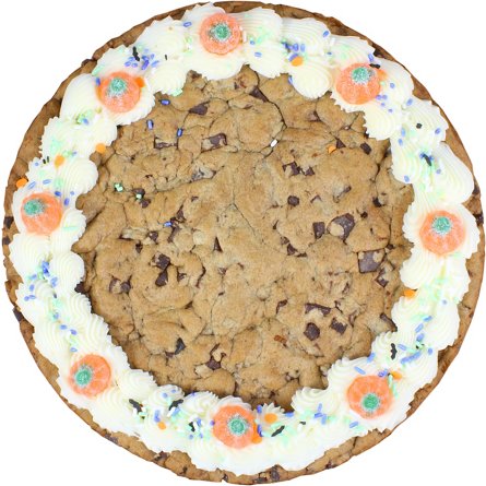 All butter giant cookie full of semi sweet chocolate chunks. Seasonally Decorated