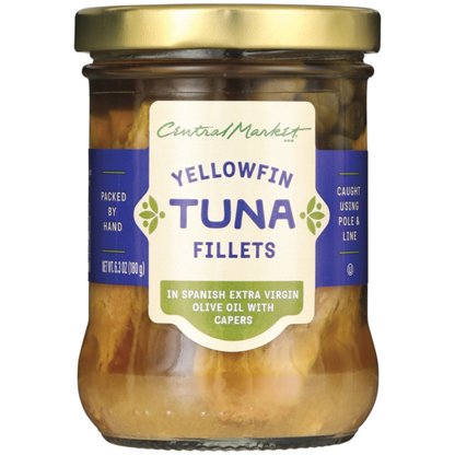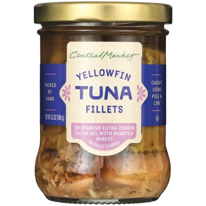 Central Market Yellowfin Tuna is caught using a pole and line and then packed by hand in Spanish extra virgin olive oil. These fillets are perfect served on a charcuterie board with fresh-cut radishes, seed crackers, hard-boiled eggs and cucumber slices for a tuna niçoise-inspired grazing dinner.