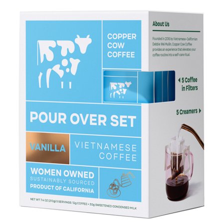 Copper Cow Coffee Pour Over Set Vietnamese Coffee - Vanilla, 5 ct