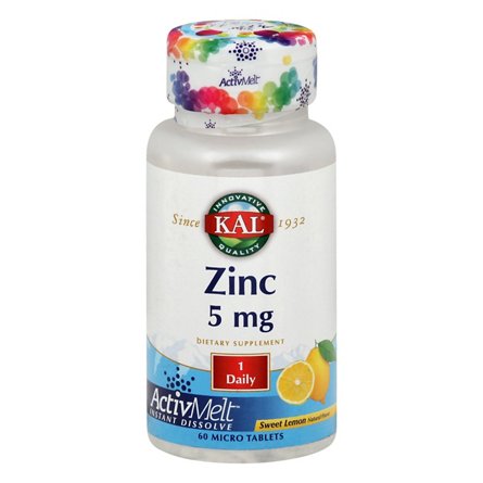 Dietary Supplement. Natural flavor. Vegetarian. Since 1932. Innovative quality. ActivMelt instant dissolve. 1 daily. Discussion: KAL Zinc ActivMelt micro tablets melt quickly in the mouth and are designed for optimal absorption in the body. Zinc is intended to provide nutritive support for healthy p...