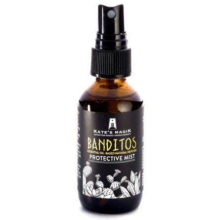 Banditos Protective Mist is a 100% Pure Essential Oil-Based Mist that features therapeutic-grade essential oils suspended in distilled water and organic vegetable glycerin. For a southwestern twist, they've further enhanced the blend with the protective and cleansing qualities of White Sage.