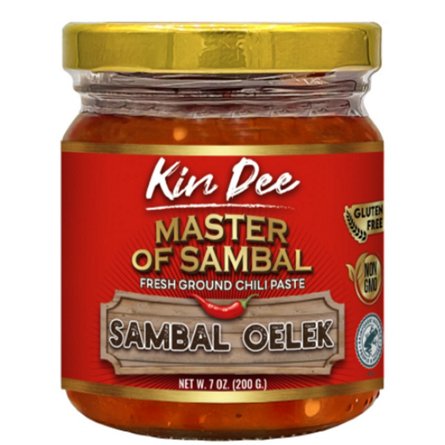 Kin Dee Sambal Oelek is a spicy Thai chili paste made with hot peppers. This paste can be used across several dishes including pizza, eggs, pasta, meats or anything else that might need a spicy kick! Add a spoonful of sambal oelek right before serving.