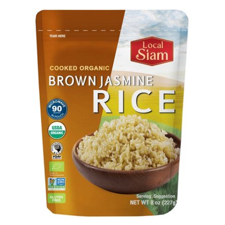 Local Siam Cooked Organic Brown Jasmine Rice is delicious and easy to prepare. Simply pop in the microwave for 90 seconds and it's ready to serve alongside your favorite dishes. A simple and delicious side dish without the cooking and cleaning.