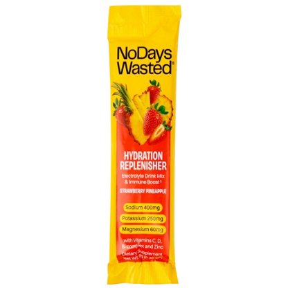 Electrolyte drink mix (sodium and potassium) with Vitamin C, D, B-Complex and Zinc for Immune Support. Hydration anytime, anywhere – morning, evening, exercise & travel. From No Days Wasted.