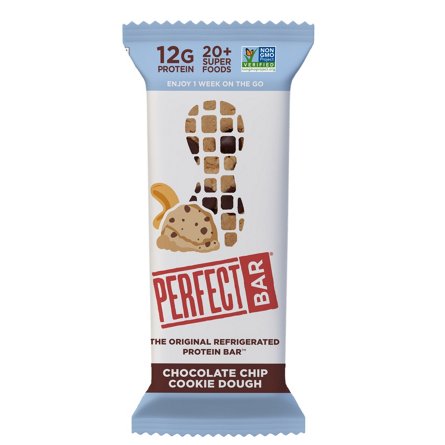 The Perfect Bar Chocolate Chip Cookie Dough Protein Bar, made with no artificial ingredients, is refrigerated for a reason. With 12 grams of whole food protein, 20+ superfoods, cashew butter, peanut butter, organic honey, dark chocolate chips, sea salt, and a cookie dough texture, it’s a family-favo...