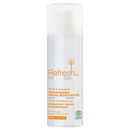 Neroli and Grapefruit infused skin brightening facial moisturizer is super rich in Vitamin C. This antioxidant powerhouse boosts skin's radiance while improving the appearance of uneven or hyper-pigmented skin. Cucumber Extract and Cornflower Water provide intense hydration and soothe the skin.